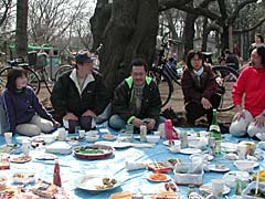 お花見にはまだちょっと早いかなという感じでしたが、天気にも恵まれぽかぽか陽気の中三宝寺池、野球グランドの隣の桜の木のもとで行われました。