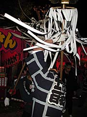 纏をふりかざし、その周りを団扇太鼓で盛り上げながら行進します。