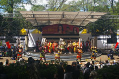 石神井公園野外ステージでは総勢100人の出演者による出陣式が行われました。